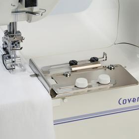 Stolik powiększający pole nie jest standardowym wyposażeniem każdego coverlocka. Jest dedykowany dla konkretnego modelu maszyny i może być dodawany fabrycznie, a może też znajdować się na liście akcesoriów opcjonalnych, które można dokupić oddzielnie. Stolik przydaje się szczególnie podczas pracy z większymi fragmentami materiałów, które ze względu na swój rozmiar i ciężar ściągają materiał, utrudniając jego równe prowadzenie.