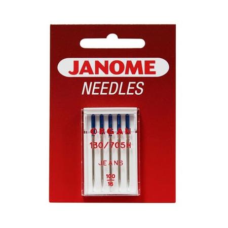 Półpłaskie igły do maszyn do szycia dostosowane do szycia jeansu, denimu, drelichu. Sprawdzą się również przy szyciu tkanin powlekanych, syntetycznych, skaju, ceraty, jak i grubych materiałów. Igły te mają półpłaską kolbę oraz specjalnie wyprofilowany czubek, który zapewnia gładki i równy szew i zapewnia zminimalizowanie oporu materiału w momencie wkłucia. Półpłaskie igły Janome pasują do większości domowych maszyn do szycia.