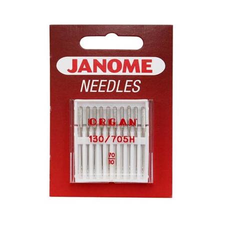 Igły Janome zaprojektowano pod system 130/705H, dzięki czemu pasują do większości domowych maszyn do szycia. Można ich używać również do maszyn oznaczonych systemem Singer 2020.