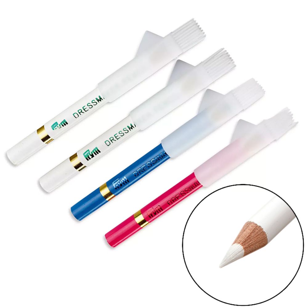 Kolorowa kreda krawiecka sprawdzi się do szerokiego zakresu materiałów, zarówno tkanin jak i dzianin. Wybierz ją do pracy z kolorowymi i ciemnymi materiałami. Kreda w ołówku pozwoli nanosić precyzyjne oznaczenia. W zestawie znajdują się 4 sztuki: 2x biała, 1x czerwona, 1x niebieska. . Każdy z ołówków posiada swoją zatyczkę zabezpieczającą. Zatyczka jest zwieńczona pędzelkiem, który można wykorzystać do późniejszego usuwania naniesionych oznaczeń.