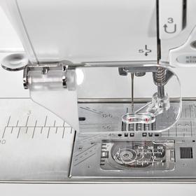 - Czytelny wyświetlacz LCD, informujący o wybranym ściegu i jego parametrach oraz wskazujący dobór odpowiedniej stopki