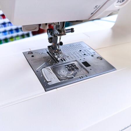 Automatyczne pozycjonowanie igły pozwala nam za pomocą jednego przycisku poruszać się pomiędzy najwyższą pozycją igły, a maksymalnym wbiciem w materiał. W zależności od potrzeb, możemy zaprogramować to, w jakiej pozycji ma zatrzymywać się igła po przerwaniu szycia. Funkcja jest bardzo przydatna np. często zmieniamy kierunek szycia. Wybieramy wtedy takie ustawienie, by maszyna każdorazowo zatrzymywała się z igłą w pozycji dolnej, co znacznie usprawnia wykonywanie obrotów na igle.