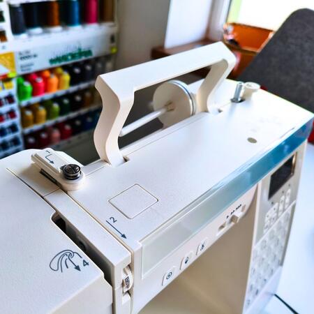 Automatyczny nawlekacz zrobi to jeszcze szybciej. Wystarczy wprowadzić w niego nitkę, a następnie jednym ruchem opuszczamy i nawlekamy igłę.