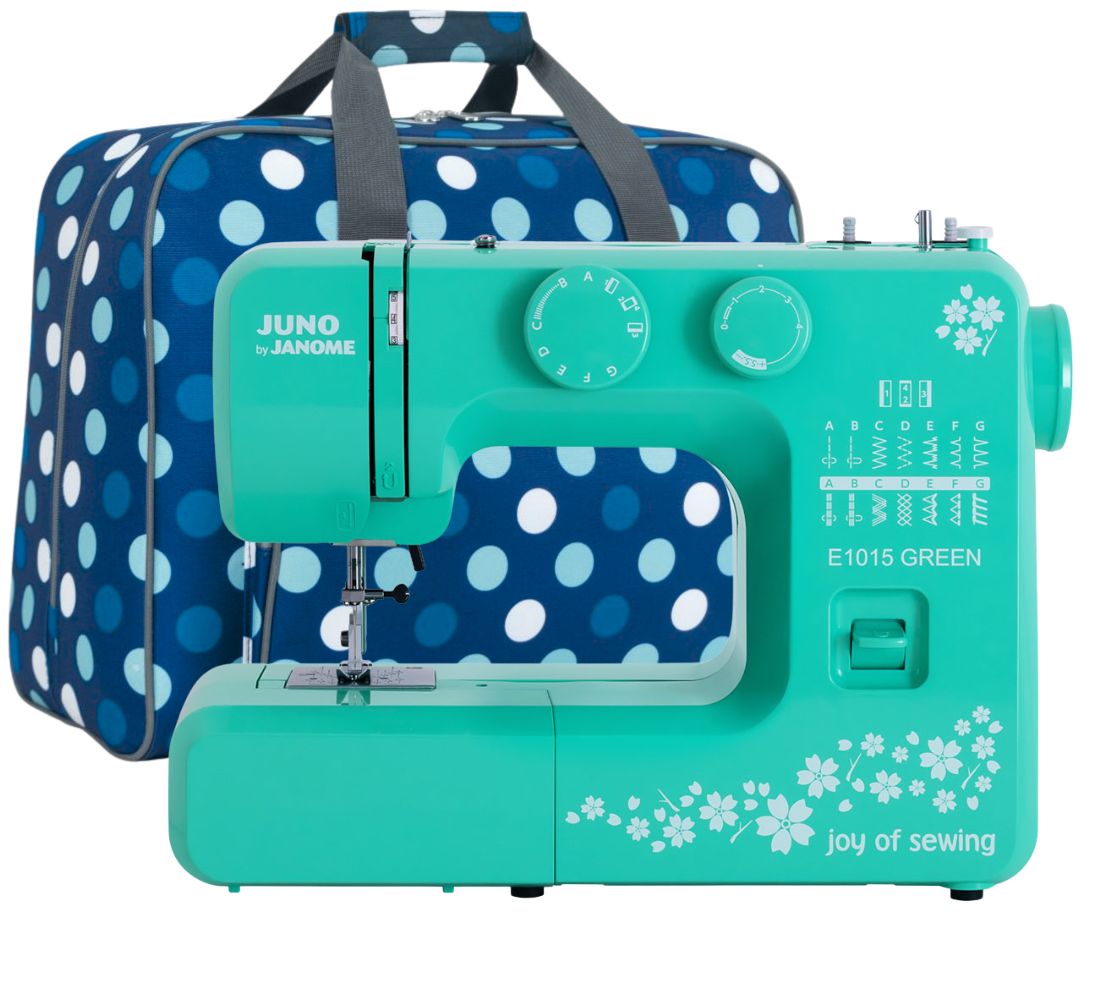 - Maszynę Juno Janome E1015 to najchętniej wybierana maszyna do szycia, która zgromadziła już ogromną liczbę fanów w Polsce. W Juno E1015 do dyspozycji mamy 15 najpopularniejszych programów ściegowych w tym ścieg prosty (stebnowy), zygzak, ścieg owerlokowy, kryty, ściegi ozdobne i półautomatyczne obszywania dziurki. Wybór ściegów i ich regulacja odbywa się za pomocą dwóch wygodnych pokręteł umieszczonych na froncie maszyny. Obsługa maszyny jak i jaj nawlekanie jest bardzo proste. Mimo iż Juno by Janome E1015 to podstawowy model maszyny posiada kilka praktycznych udogodnień jak np. zatrzaskowe mocowanie stopek, ledowe oświetlenie miejsca pracy, możliwość szycia podwójną i wolne ramię, które ułatwia szycia na okrągło więc wykańczanie rękawów, wszywania ściągaczy czy skracanie spodni będzie łatwe i bezproblemowe. Maszyna do szycia Janome Juno E1015 to doskonała maszyna dla osób zaczynających swoją przygodę z szyciem.