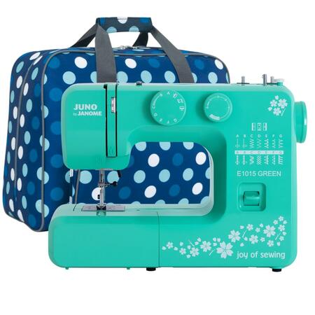 W zestawie taniej! Kupując zestaw otrzymujesz maszynę do szycia Juno by Janome E1015 i praktyczną torbą do jej bezpiecznego i wygodnego przechowywania.