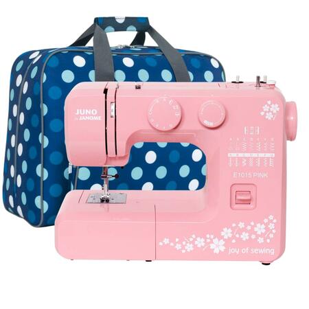 W zestawie taniej! Kupując zestaw otrzymujesz maszynę do szycia Juno by Janome E1015 i praktyczną torbą do jej bezpiecznego i wygodnego przechowywania.