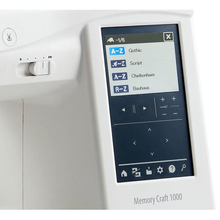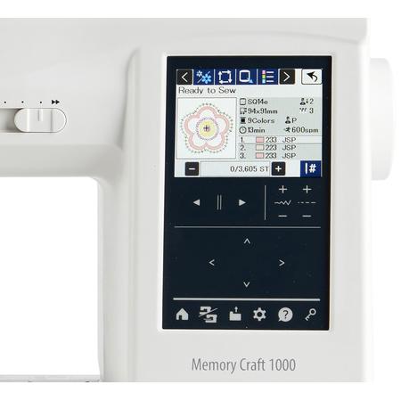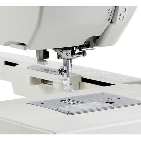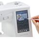 - Duży, kolorowy wyświetlacz LCD informujący o wybranym ściegu, jego parametrach i sugerujący dobór odpowiedniej stopki, a także pozwalający wygodnie programować kolejność szycia, modyfikować ściegi lustrzanym odbiciem czy dobierać właściwie programy dla szycia podwójną igłą