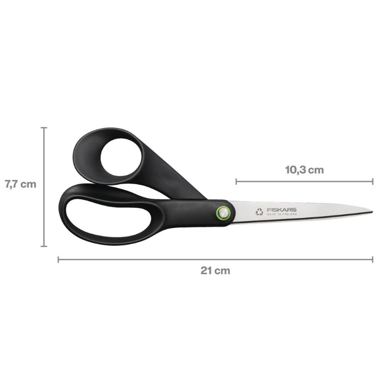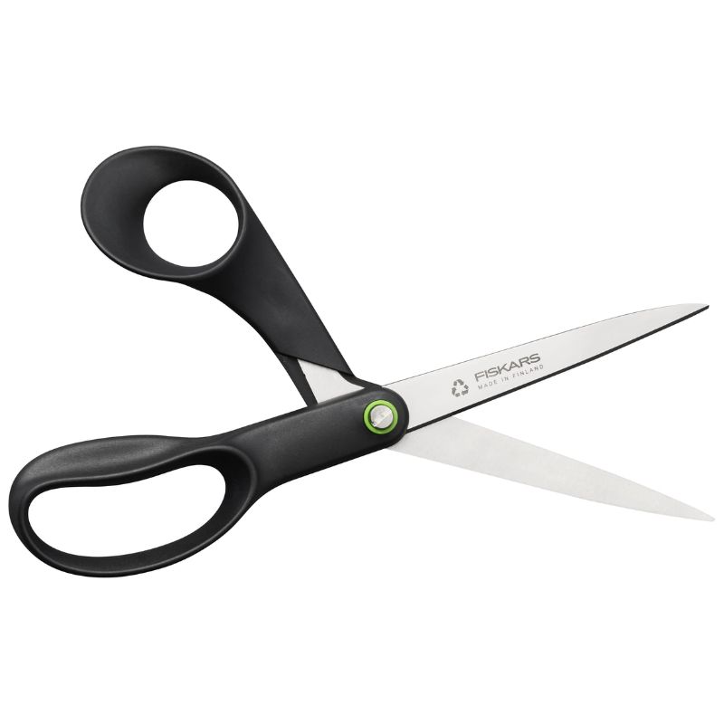 Ostre ostrza i specjalnie wyprofilowany uchwyt pozwalają uzyskać maksymalną kontrolę i komfort podczas cięcia. Doskonałe do papieru, tkanin i materiałów laminowanych. Występują w dwóch kolorach: białym i czarnym. Wysokiej jakości, ostrza ze stali nierdzewnej pozostają ostre dłużej i tną na całej długości ostrza (aż do czubka). Nożyczki można ostrzyć, polecamy ostrzałkę firmy Fiskars. Zaprojektowane dla osób praworęcznych.