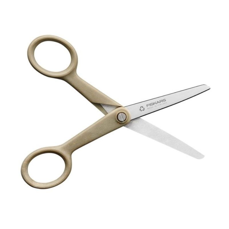 Nożyczki uniwersalne Fiskars ReNew to seria nożyczek stworzona z materiałów pochodzących z recyklingu, w 100% nadających się do ponownego przetworzenia.