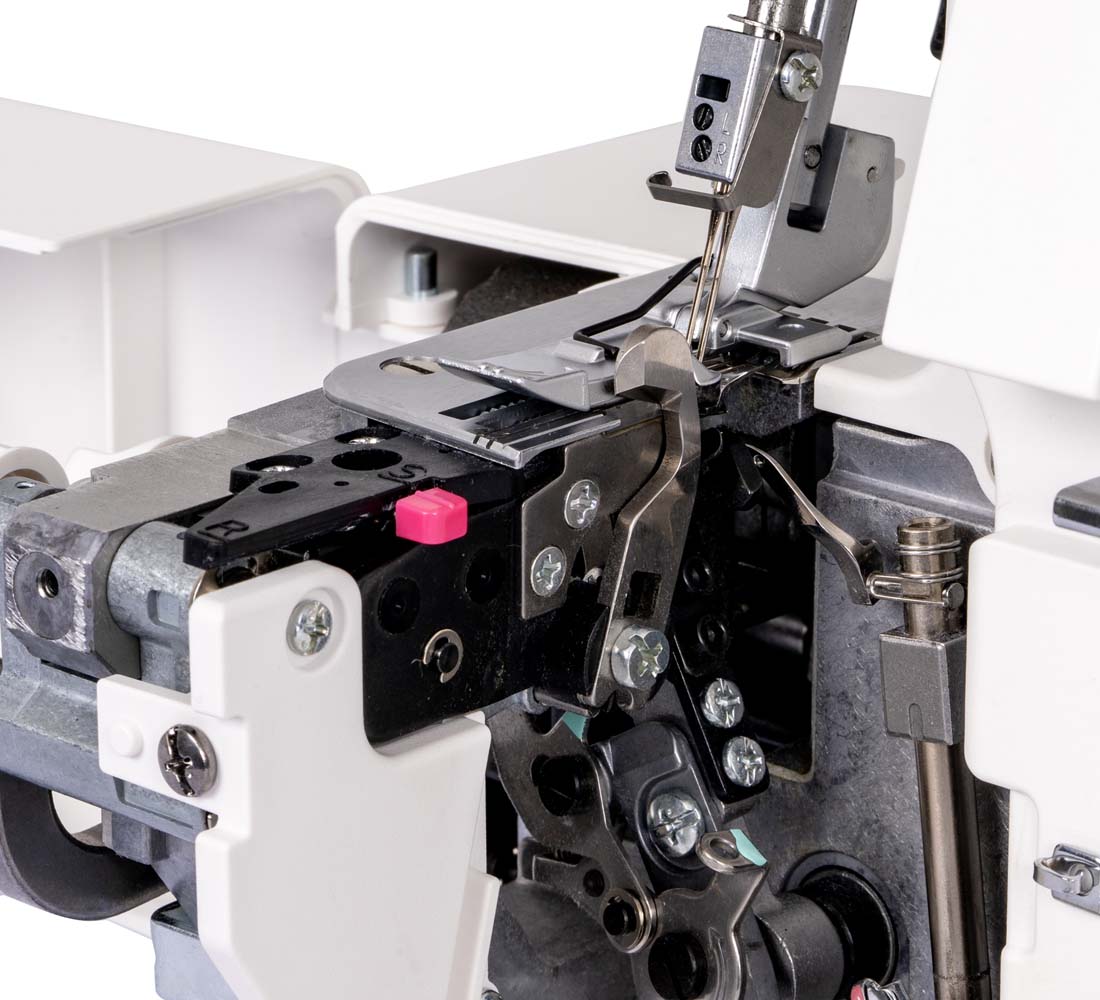 - Dopracowana stopka daje lepszą widoczność, przekłada się też na ładniejszy ścieg rolujący, a dodatkowo w połączeniu z 8-punktowymi ząbkami precyzyjnie przesuwa materiał podczas szycia.