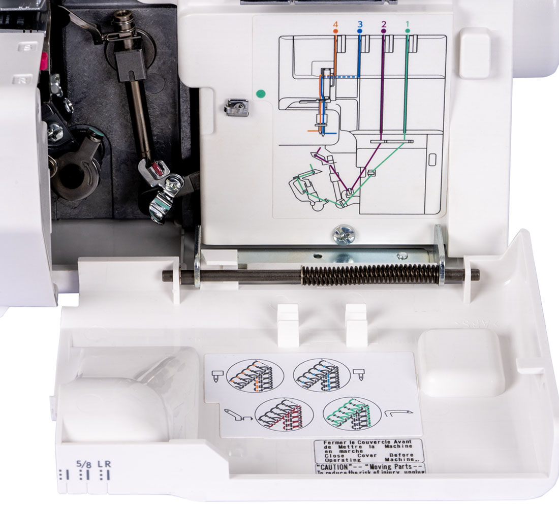 - Barwny system nawlekania nici, ułatwiający ich szybką zmianę