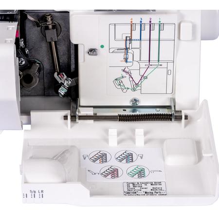 - 7 dostępnych ściegów: 3- i 4- nitkowy owerlokowy, 3-nitkowy ścieg rolujący oraz odmiany tych ściegów zależne ustawień