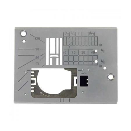 Oryginalna płytka do maszyny do szycia Janome QXL605 i TXL607. Metalowa płytka ściegowa, nie zawiera małej przejrzystej zasuwki zamykającej spodnią szpulkę. Zasuwka jest dostępna pod numerem 846271103