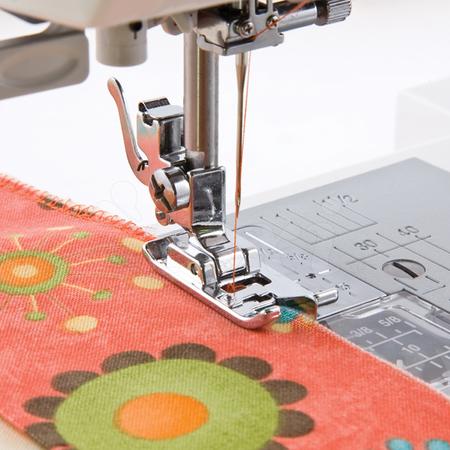 Do spłaszczania ściegu zszywającego i jednoczesnego ozdabiania rozluźnionym ściegiem zygzakowym. Liniał prowadzący i języczek rozluźniający zapewniają równy, ładny ścieg krawędziowy. Szczególnie przydatna do ozdabiania łączeń (zwłaszcza do prac zszywanych z łatek).